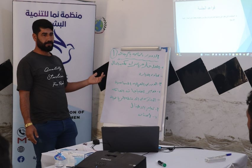 قامت منظمة نما للتنمية البشرية بتنفيذ ثلاث جلسات توعوية حول موضوع العنف القائم على النوع الاجتماعي GBV ، استهدفت 24 رجلاً و 12 امراة من ناحية العياضية والقرى التابعة لها، تأتي هذه الانشطة ضمن مشروع "تعزيز الاستقرار و رفاھیة وكرامة وسلامة السكان المتضررین من الصراع والناجین من العنف المبني على النوع الاجتماعي"التي تنفذها منظمة نما للتنمية البشرية بالشراكة مع جمعية التحرير للتنمية وبدعم من مساعدات الشعب النرويجي وبتمويل سخي من وزارة الخارجية الهولندية