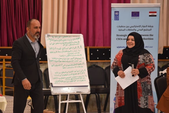 عقدت منظمة نما في مدينة تلعفر جلسة ( حول بناء استراتيجية سنوية لعمل منظمات المجتمع المدني باتجاه دعم الجهد الحكومي لتقديم خدمات افضل للمجتمع ودعم اللامركزية ) ضمن إطار برنامج تعافي العراق واستقراره عبر التنمية المحلية ، تم تنفيذ الجلسة بالشراكة بين منظمة نما وبرنامج الانمائي للأمم المتحدة( Undp ) وبتمويل من الاتحاد الاوروبي. حضر الجلسة ↪️ مدارء وممثلين عن ٢٠ دائرة حكومية في تلعفر بعض من الشخصيات الدينية والمجتمعية من تلعفر * مدراء وممثلين عن المنظمات الدولية والمحلية والفرق التطوعية في ( تلعفر ، العياضية ، المحلبية )